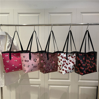 Bolso de mano de un solo hombro de gran capacidad para mujer, bolso de mano elegante con Estampado de cereza a la moda