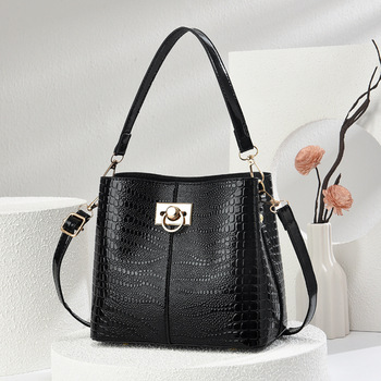 תבנית פו תנין פו של נשים חדשות עור שקית דלי כתף יחיד כיסוי משקוף סגירת מעגל פוליאסטר יוקרתי תיק לנשים