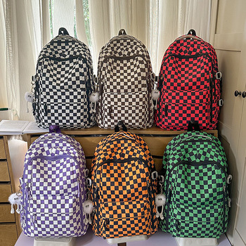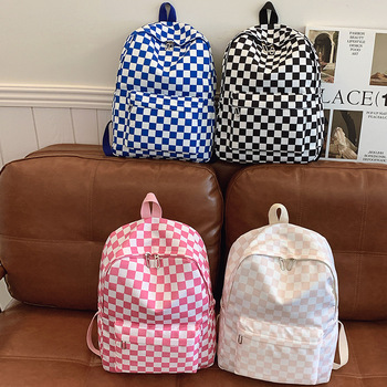 세련된 방수 캐주얼 체크 무늬 스포츠 학교 배낭 학생을위한 블랙 화이트 체크 무늬 배낭