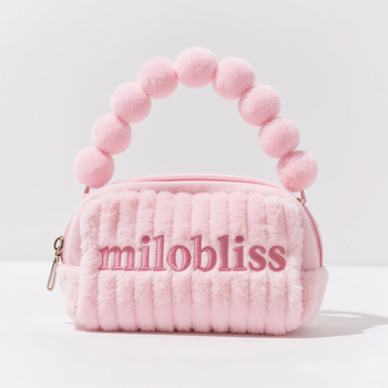 Custom Logo Roze Pluche Make-Up Tas Cosmetische Tas Met Rits Sluiting Mode Stijl Pluizige Make-Up Tas